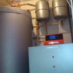 På bilderna ser man en UVL 500 som är den vita tanken, en Vitocell 100 V vamvattenberedare på 390l samt då vitocal 200 G 13 kw maskinen som är motorn i systemet.